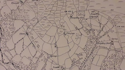In 1843 Pen y Cae was a sixteen-acre smallholding, including two arable fields and a wood, in addition to grass pasture. It was owned and occupied by a John Davies. This may be same John Davies who lived at Picau nearby from before 1841 to after 1871, as he paid rates on both in 1870. Pen y Cae does not appear as an occupied building in the censuses (made every ten years from 1841) though an Ann Williams of Pen y Cae was buried in Cwmyoy in 1852.